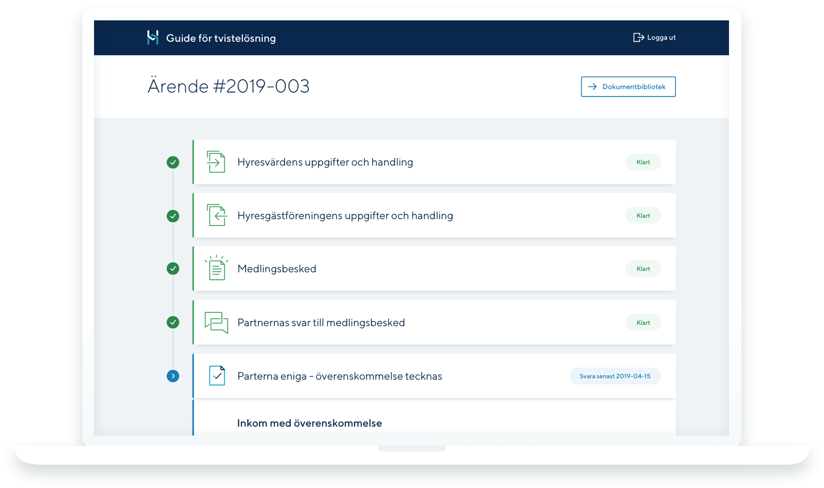 I Guiden för tvistelösning kan du som representant för en medlem i Sveriges Allmännytta eller Hyresgästföreningen registrera och följa ert tvisteärende online.